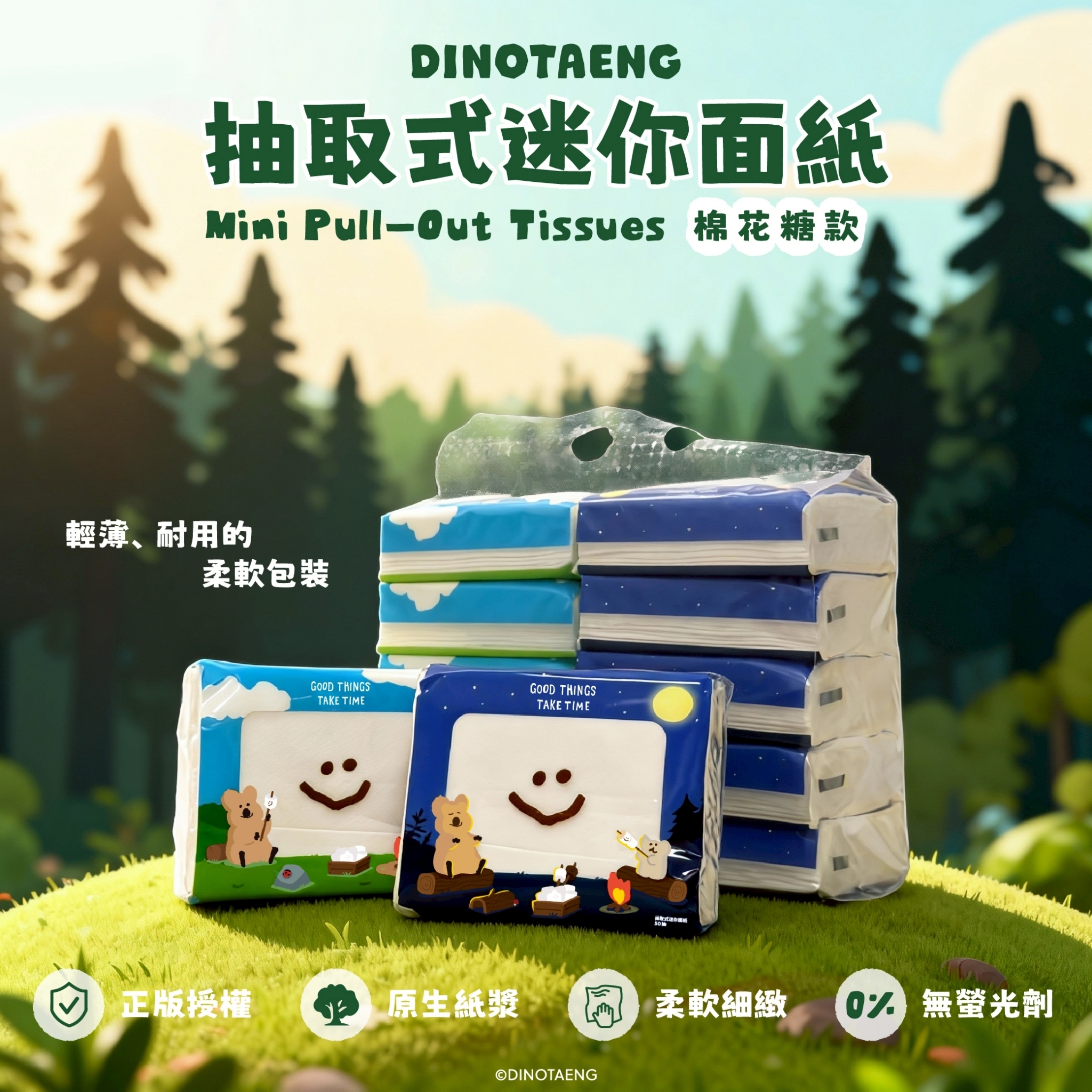 DINOTAENG 抽取式迷你面紙(棉花糖款)-10包*10袋/一箱(箱出含運,偏遠地區運費另收)